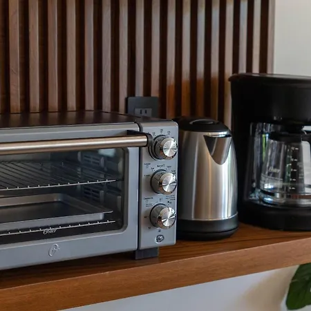 Eine Küche, die in der Villa angeboten wird, verfügt über einen Kühlschrank, einen Toaster und Küchenutensilien. Verbringen Sie einen schönen Abend in den nächstgelegenen Restaurants De la Burger und Celia Tacos, die in unmittelbarer Nähe von der Villa Awa Torre F Enamorate De Playa Del Carmen ist.